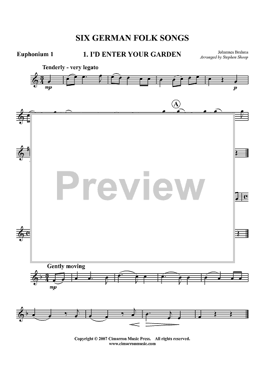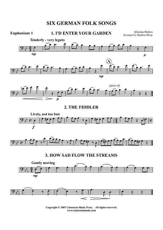 "Six German Folk Songs - Euphonium 1 BC/TC" Sheet Music by Johannes Brahms