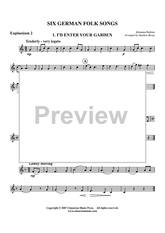 "Six German Folk Songs - Euphonium 2 BC/TC" Sheet Music by Johannes Brahms