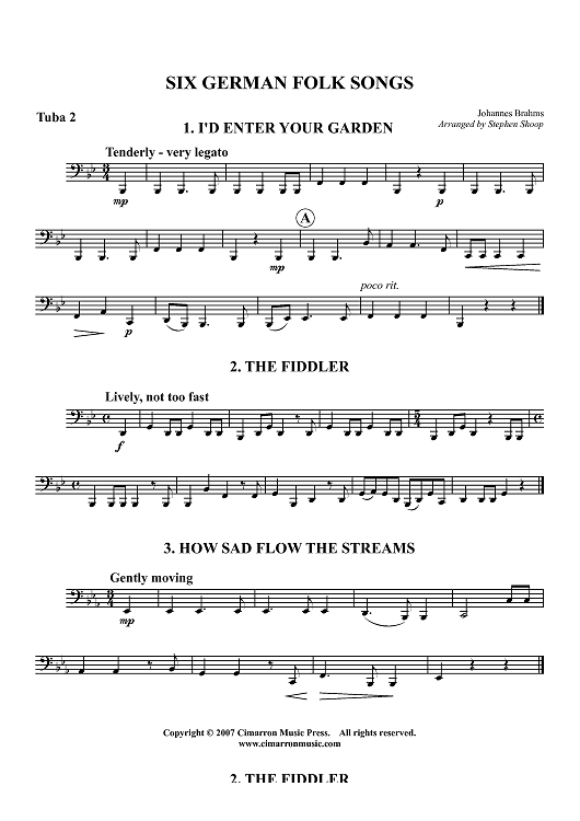 Digital Sheet Music for Six German Folk Songs - Tuba 2 by Johannes Brahms, Stephen Shoop scored for Tuba Quartet; id:360863