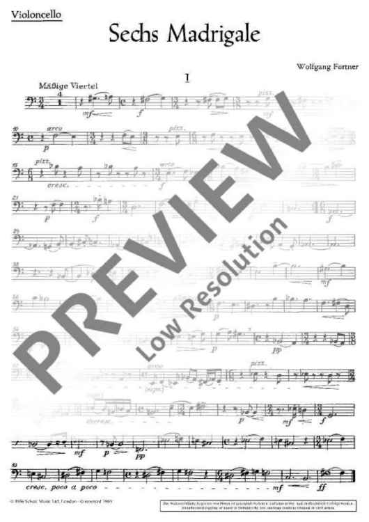 "Six Madrigals - Cello" Sheet Music by Wolfgang Fortner