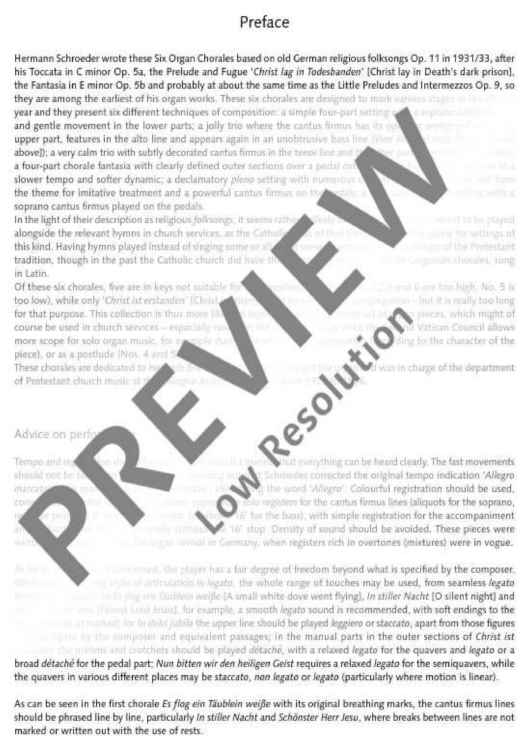 "Six Organ Chorales" Sheet Music by Hermann Schroeder