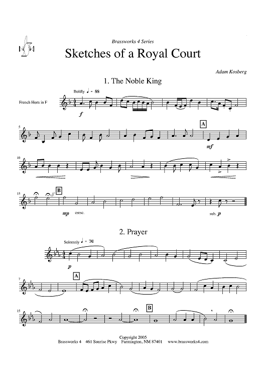 Digital Sheet Music for Sketches of a Royal Court - Horn in F by Adam Kosberg scored for Brass Quintet; id:428502