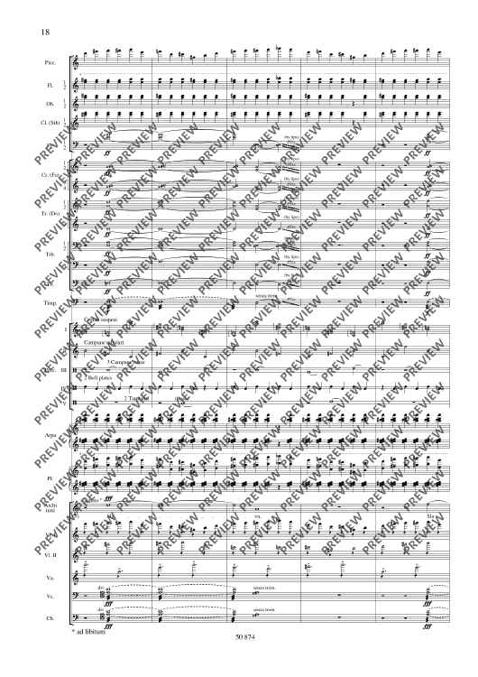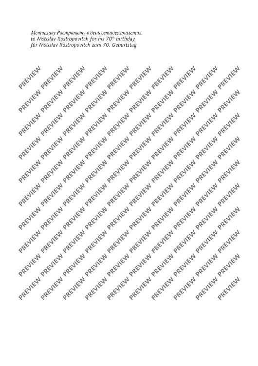 A special tribute is paid to the great musician Rostropovich with “bells ringing out in celebration”, as indicated in the subtitle to the score, and with the fact that in the bombastic final section of this one-movement piece all the musicians - apart from the wind players - are supposed to play and sing at the same time.