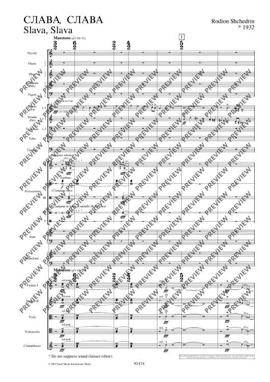 "Slava, Slava - Full Score" Sheet Music by Rodion Shchedrin