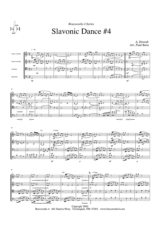Digital Sheet Music for Slavonic Dance No. 4 - Score by Antonín Dvorák, Paul Bara scored for Brass Quartet; id:428518
