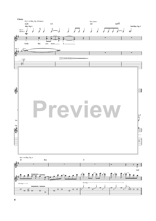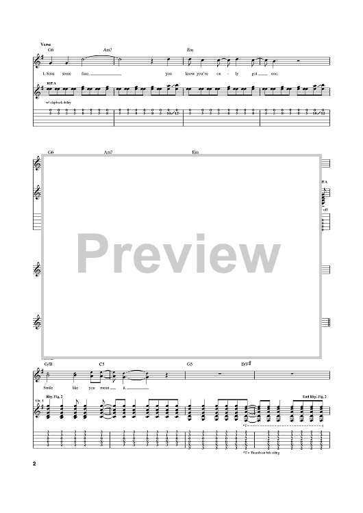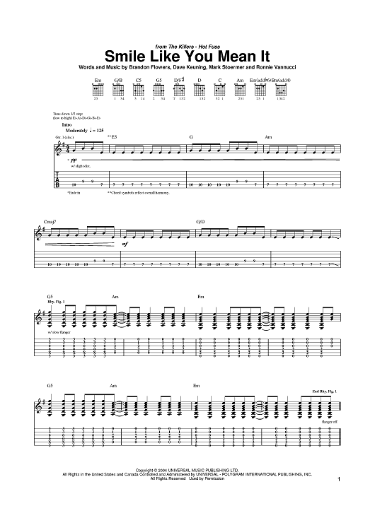 Digital Sheet Music for Smile Like You Mean It by Brandon Flowers, Dave Keuning, The Killers, Mark Stoermer, Ronnie Vannucci Jr. scored for Guitar Tab; id:380365