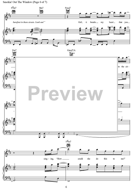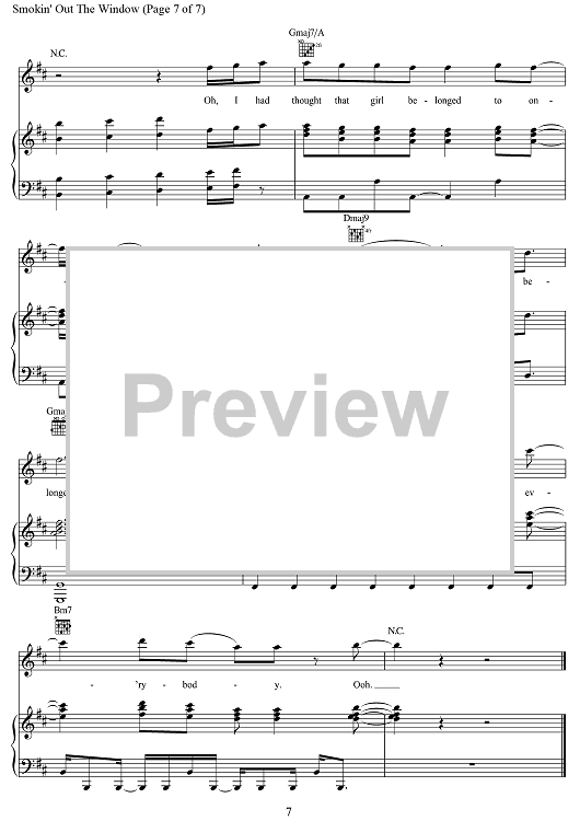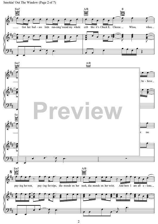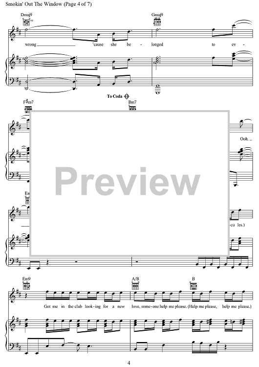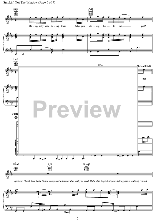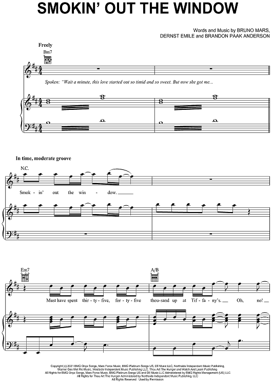 "Smokin' Out the Window" Sheet Music by Bruno Mars