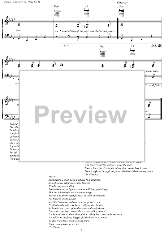 Digital Sheet Music for So Many Tears by Stevie Wonder, 2Pac, Gregory Jacobs, Eric Vandell Baker scored for Piano/Vocal/Chords; id:286735