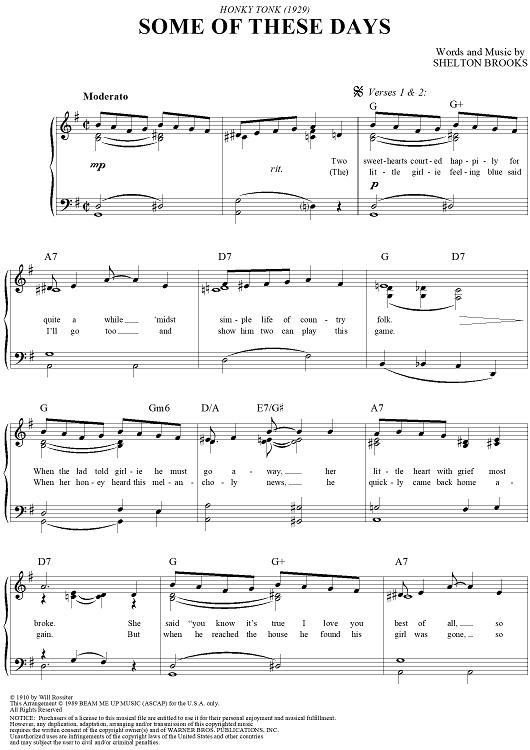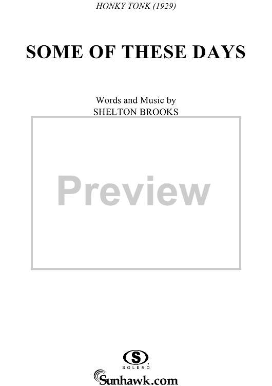 Digital Sheet Music for Some of These Days by Shelton Brooks scored for Easy Piano/Vocal; id:274110