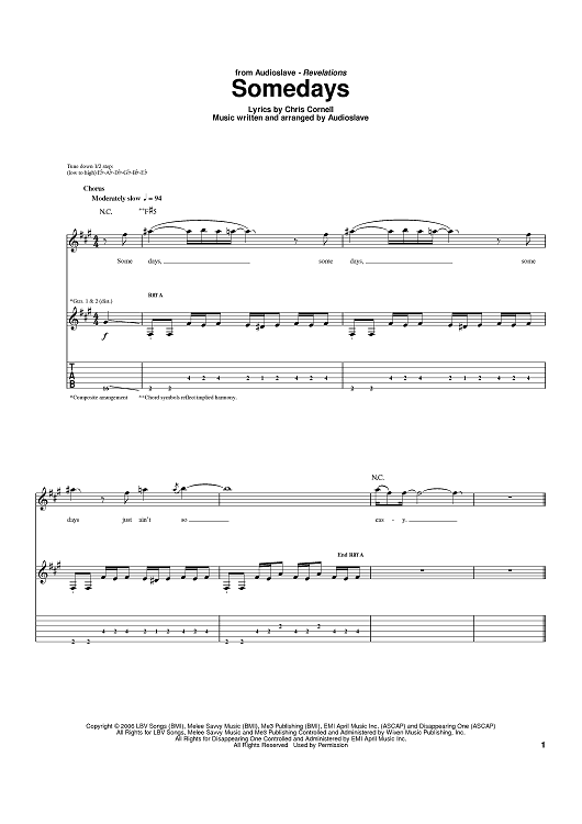 Digital Sheet Music for Somedays by Audioslave, Chris Cornell scored for Guitar Tab; id:395498