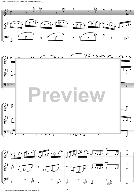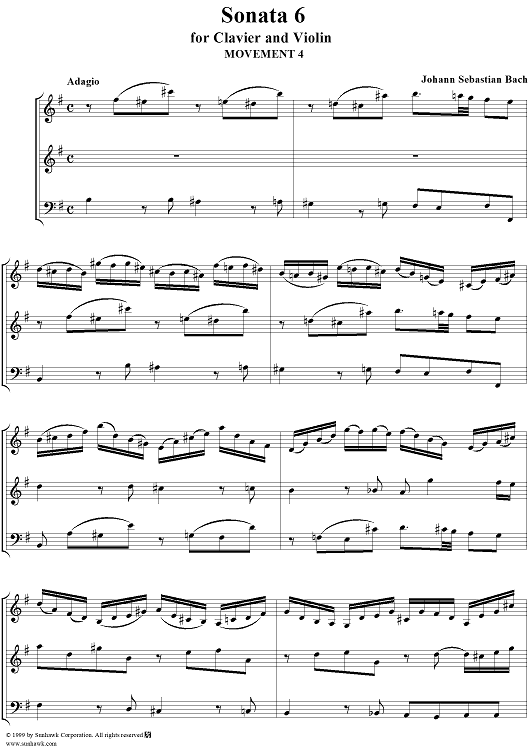 Digital Sheet Music for Sonata 6 for Clavier and Violin, 1st version, Adagio by Johann Sebastian Bach scored for Violin/Piano; id:276224