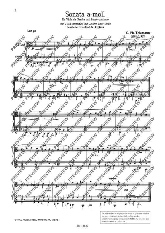 "Sonata a minor - Performing Score" Sheet Music by Georg Philipp Telemann