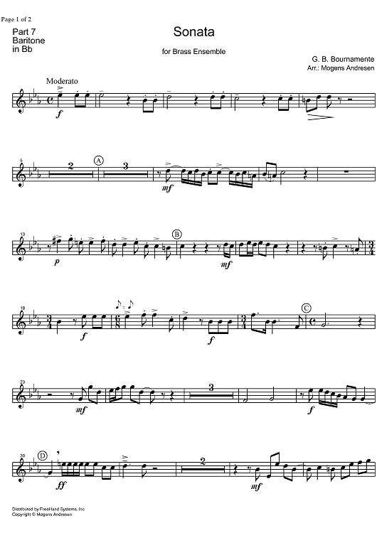 Digital Sheet Music for Sonata - Baritone Horn by Mogens Andresen, G.B. Buonamente scored for Brass Ensemble; id:328053