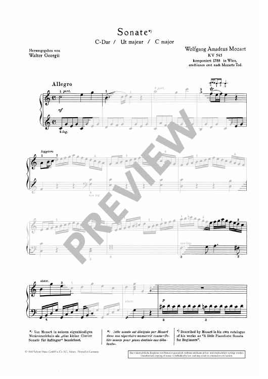 "Sonata C Major" Sheet Music by Wolfgang Amadeus Mozart
