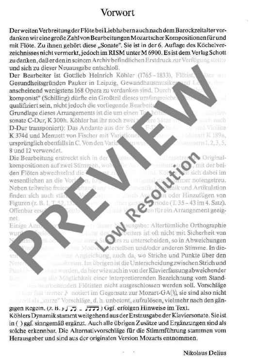 Digital Sheet Music for Sonata D Major by Wolfgang Amadeus Mozart scored for 2 Flutes; id:475652
