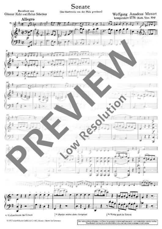 Digital Sheet Music for Sonata e minor by Wolfgang Amadeus Mozart, Guenter Kehr, Heinz Schroeter scored for Violin And Piano; id:474811