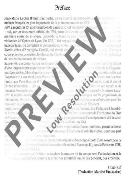 Digital Sheet Music for Sonata e minor by Jean-Marie Leclair scored for Flute (violin) And Basso Continuo; id:482917