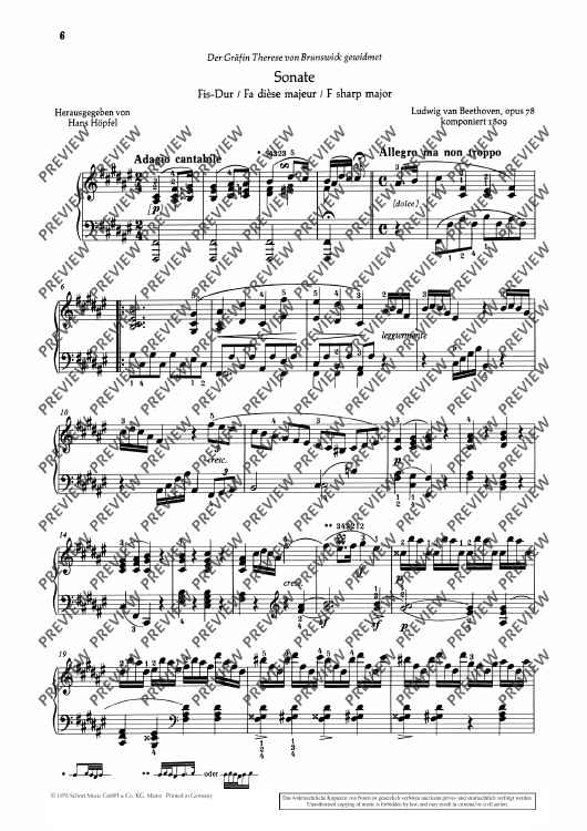 Digital Sheet Music for Sonata F-sharp major by Ludwig van Beethoven scored for Piano; id:482490