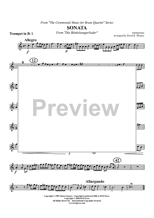 "Sonata from "Die bankelsangerlieder" - Trumpet 1" Sheet Music by Traditional