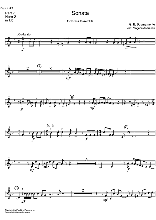 Digital Sheet Music for Sonata - Horn in E-flat 2 by Mogens Andresen, G.B. Buonamente scored for Brass Ensemble; id:328052