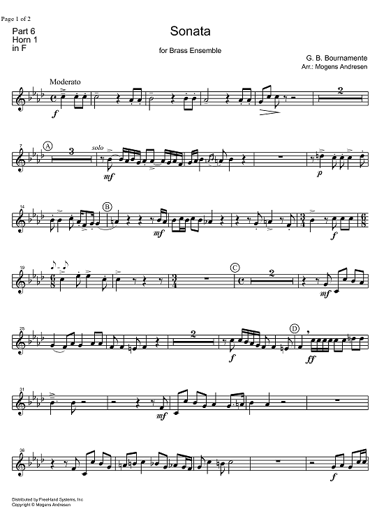Digital Sheet Music for Sonata - Horn in F 1 by Mogens Andresen, G.B. Buonamente scored for Brass Ensemble; id:328049