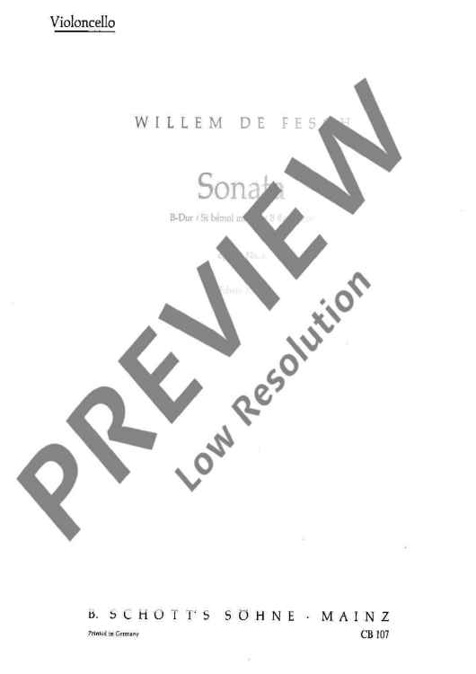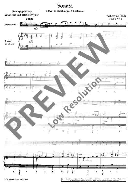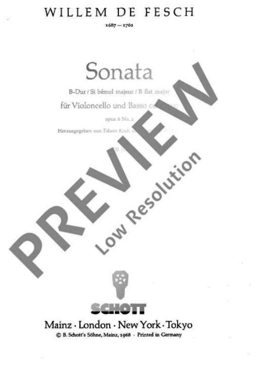 Digital Sheet Music for Sonata in B flat major by Willem de Fesch scored for Cello And Basso Continuo; id:482850