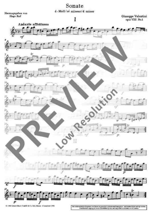 "Sonata in D minor" Sheet Music by Giuseppe Valentini