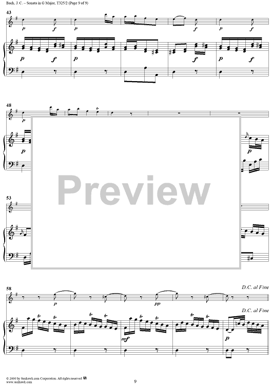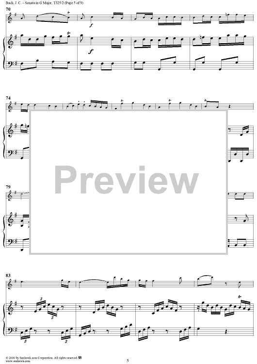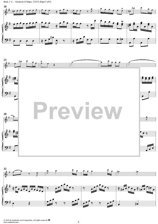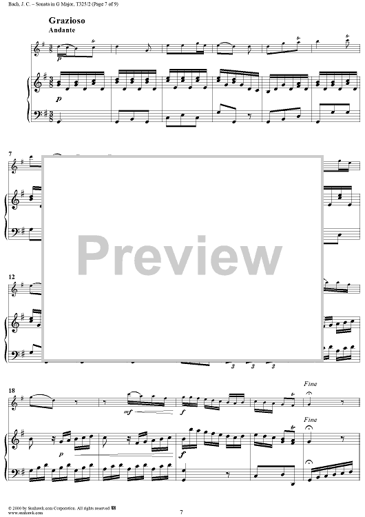 Digital Sheet Music for Sonata in G Major, Op. 16, No. 2 - Piano by Johann Christian Bach scored for Flute or Violin/Piano; id:241441