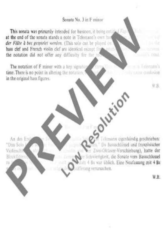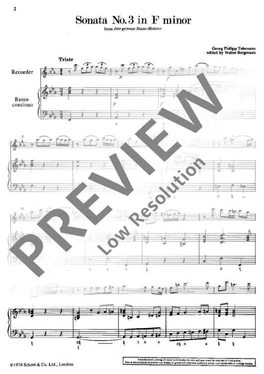 "Sonata No. 3 F minor" Sheet Music by Georg Philipp Telemann