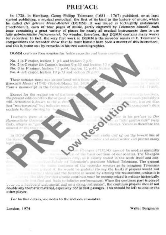 Digital Sheet Music for Sonata No. 3 F minor by Georg Philipp Telemann scored for Treble Recorder And Basso Continuo; Cello Ad Libitum; id:482690