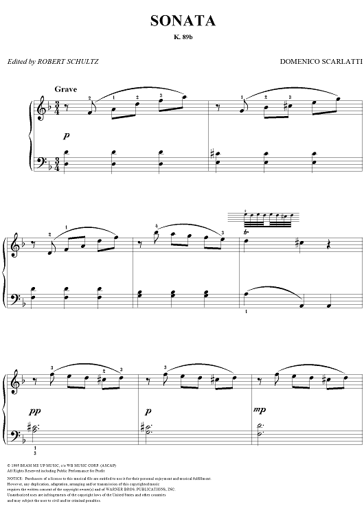 Digital Sheet Music for Sonata by Domenico Scarlatti scored for Easy Piano; id:284681