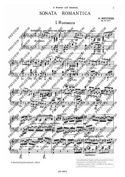 Digital Sheet Music for Sonata romántica by Nikolai Medtner scored for Piano; id:500519