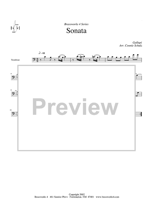 Digital Sheet Music for Sonata - Trombone by Baldassare Galuppi, Connie Schulz scored for Brass Quartet; id:318778