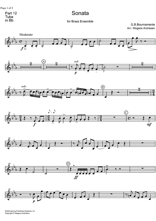 Digital Sheet Music for Sonata - Tuba in B-flat BC by Mogens Andresen, G.B. Buonamente scored for Brass Ensemble; id:328060