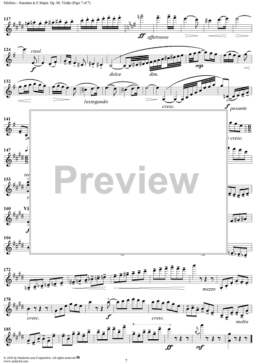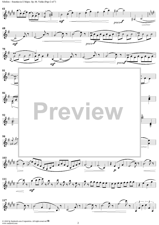 "Sonatina in E Major, Op. 80 - Violin" Sheet Music by Jean Sibelius