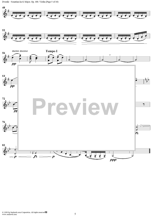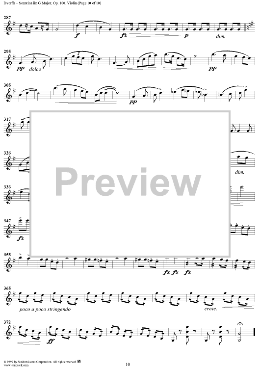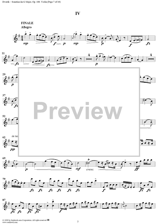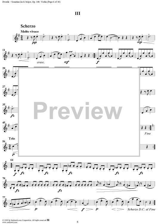 Digital Sheet Music for Sonatina in G Major - Violin by Antonín Dvorák scored for Violin/Piano; id:309774