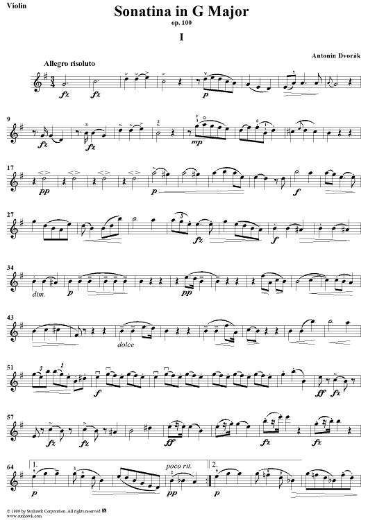 "Sonatina in G Major - Violin" Sheet Music by Antonín Dvorák