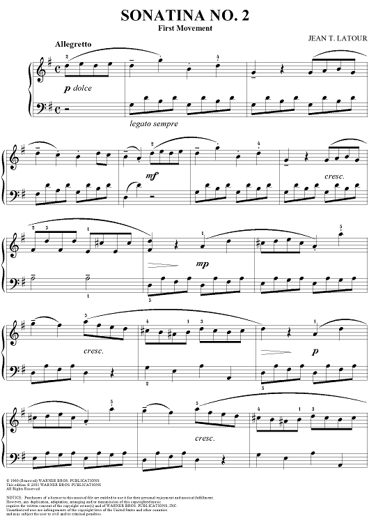 "Sonatina No. 2: First Movement" Sheet Music by Jean T. Latour