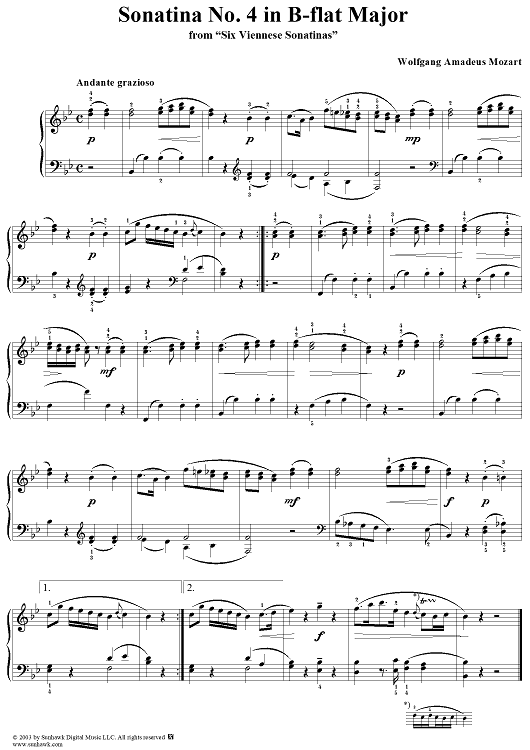 "Sonatina No. 4 in B-flat Major, K229 (K439b)" Sheet Music by Wolfgang Amadeus Mozart