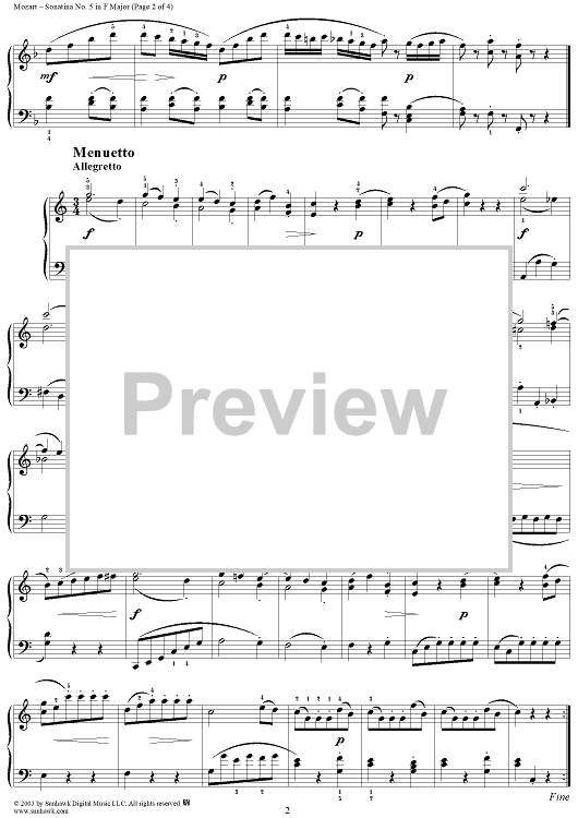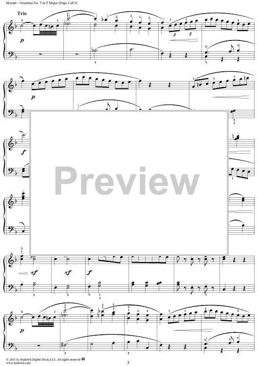 "Sonatina No. 5 in F Major, K229 (K439b)" Sheet Music by Wolfgang Amadeus Mozart