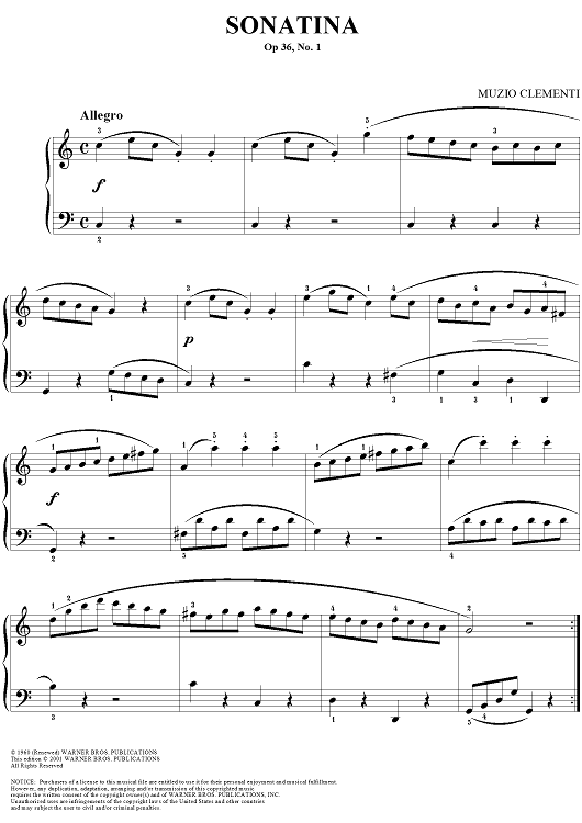 Digital Sheet Music for Sonatina by Muzio Clementi scored for Easy Piano; id:286822