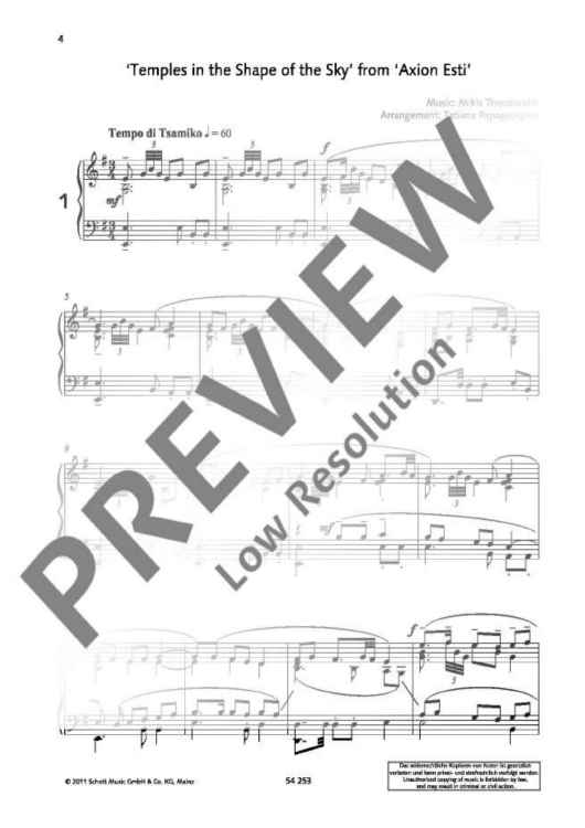 “Songs for Piano” is an exclusive selection of music from Mikis Theodorakis` song cycles, ballets and films such as “Zorba the Greek”, and from the oratorio “Axion Esti”. Inspired by ancient Greek mythology and pictures of everyday life, the music reflects the composer`s fight for freedom and his love for the Greek people. For the first time, these songs are available to the intermediate piano player. Pianist Tatiana Papageorgiou, one of the leading interpreters of Theodorakis` music, has arranged the pieces according to the original recordings with great attention to detail.