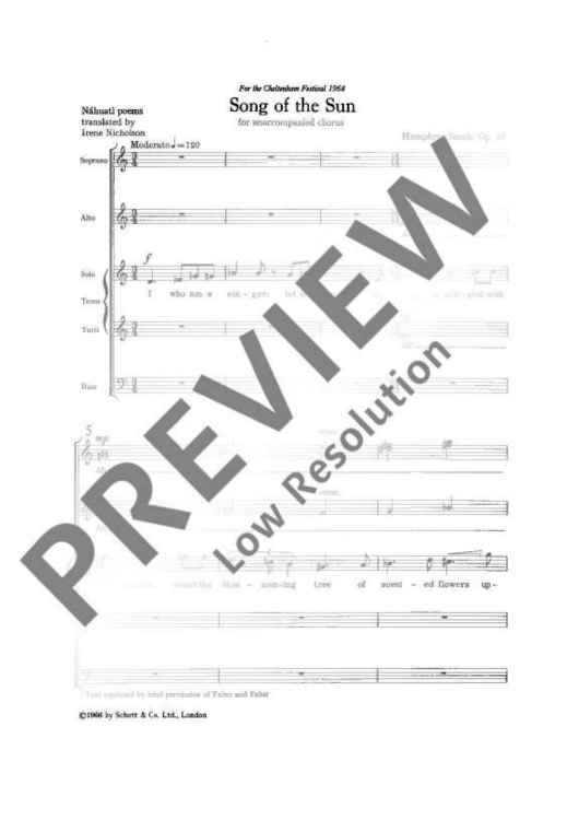 Digital Sheet Music for Songs of the Sun - Choral Score by Humphrey Searle scored for Mixed Choir (satb); id:484074