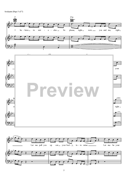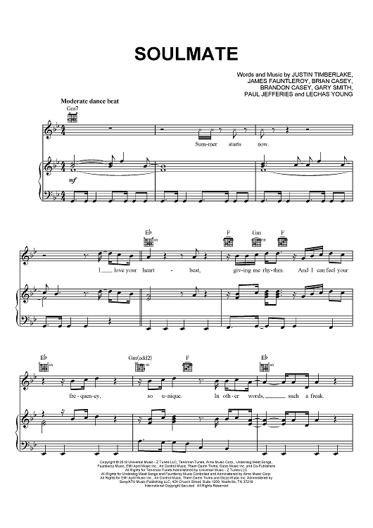 Digital Sheet Music for Soulmate by Gary Smith, Brandon Casey, Brian Casey, James Fauntleroy II, Paul Jefferies, Lechas Young, Justin Timberlake scored for Piano/Vocal/Chords; id:466416