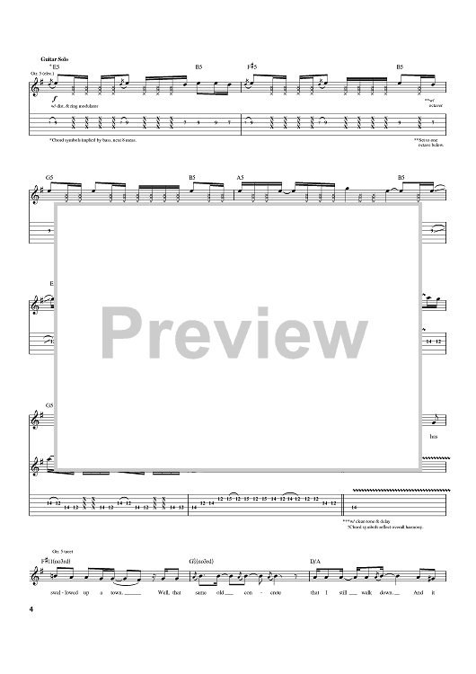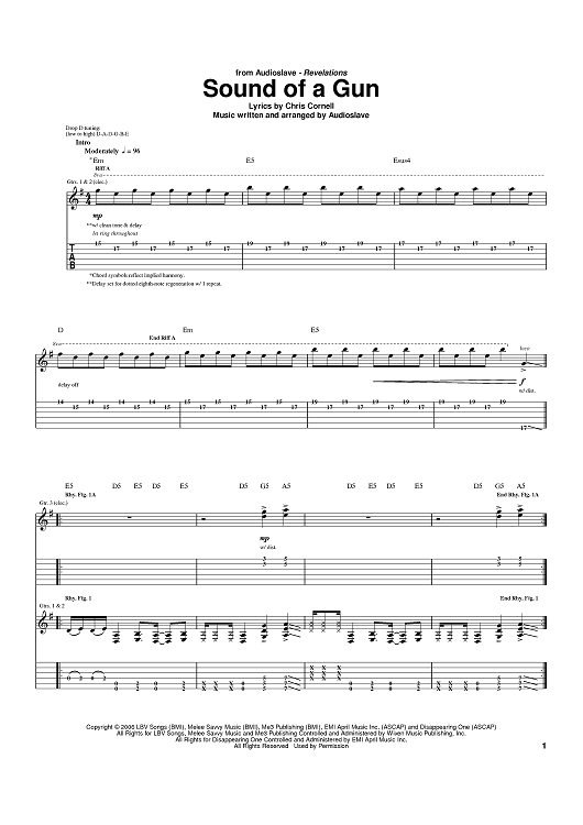 Digital Sheet Music for Sound Of A Gun by Audioslave, Chris Cornell scored for Guitar Tab; id:395499