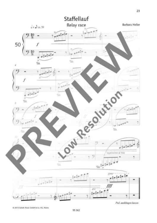 Die Sammlung "Klangspuren" von Barbara Heller umfasst 76 Klavierwerke, die für den Barbara Heller-Klavierwettbewerb entstanden sind. Jeder Titel hat seine persönliche Aussage: Die Musik kann ein Bild aufzeigen oder an etwas erinnern, eine kurze Erzählung sein und in eine besondere Stimmung versetzten. Progressiv geordnet wurden die Stücke in zwei Bände aufgeteilt: Band 1 enthält die sehr leichten bis mittelschweren, Band 2 die mittelschweren bis schweren Stücke.