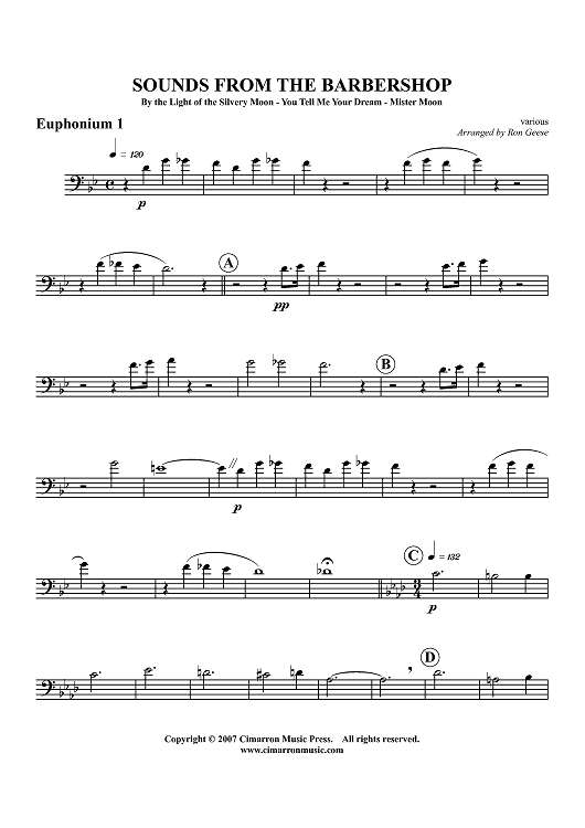 Digital Sheet Music for Sounds From The Barbershop - Euphonium 1 by Various, Ron Geese scored for Tuba Quartet; id:366386