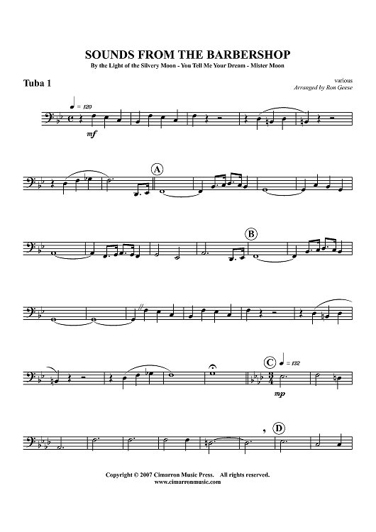 Digital Sheet Music for Sounds From The Barbershop - Tuba 1 by Various, Ron Geese scored for Tuba Quartet; id:366384