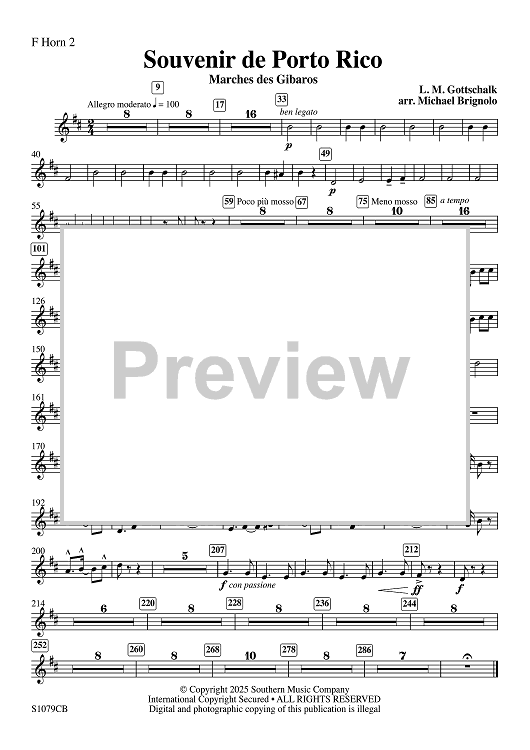 Digital Sheet Music for Souvenir de Porto Rico - F Horn 2 by Louis Moreau Gottschalk, Michael Brignolo scored for Concert Band; id:508105