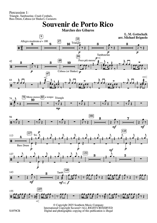 Digital Sheet Music for Souvenir de Porto Rico - Percussion 1 by Louis Moreau Gottschalk, Michael Brignolo scored for Concert Band; id:508115